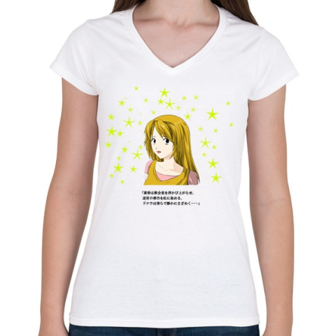 1 kép PRINTFASHION manga2 - Női V-nyakú póló - Fehér
