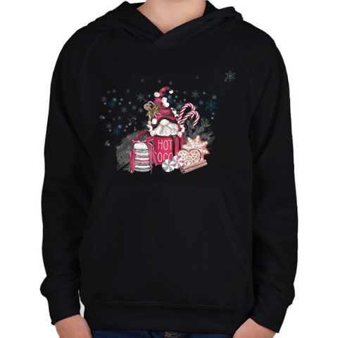1 kép PRINTFASHION manó bögrében - Gyerek kapucnis pulóver - Fekete