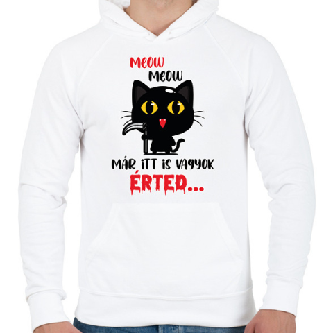 1 kép PRINTFASHION Már itt is vagyok - Férfi kapucnis pulóver - Fehér