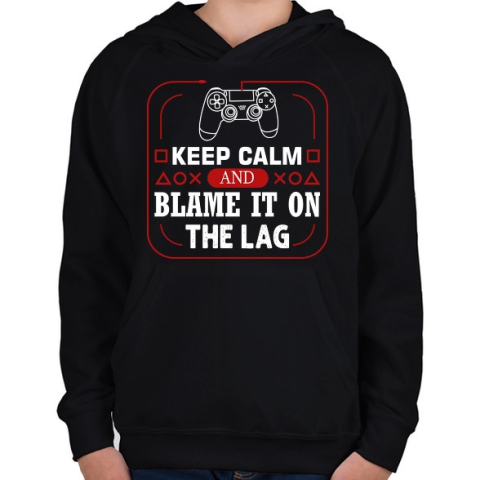 1 kép PRINTFASHION Maradj nyugodt és fogd a LAG-ra - Gyerek kapucnis pulóver - Fekete