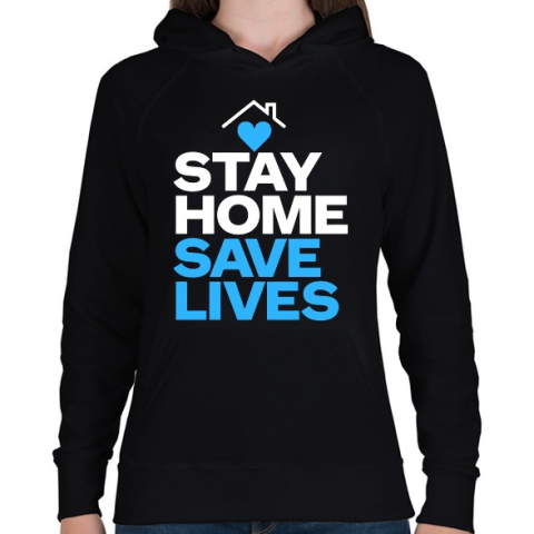 1 kép PRINTFASHION Maradj otthon és ments életet! - Női kapucnis pulóver - Fekete