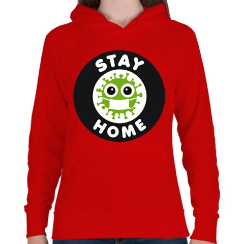 1 kép PRINTFASHION Maradj otthon! - Női kapucnis pulóver - Piros