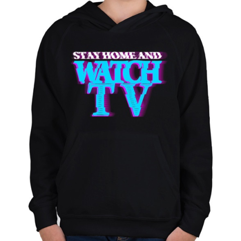 1 kép PRINTFASHION Maradj otthon tévézni - Gyerek kapucnis pulóver - Fekete
