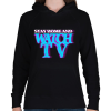 1 kép PRINTFASHION Maradj otthon tévézni - Női kapucnis pulóver - Fekete