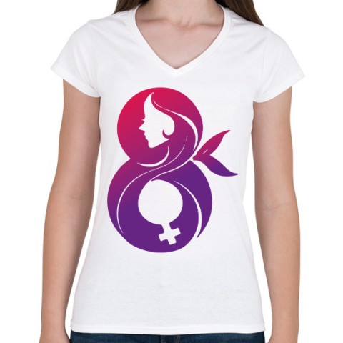 1 kép PRINTFASHION Március 8 - Női V-nyakú póló - Fehér
