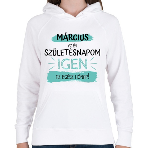 1 kép PRINTFASHION Március az én születésnapom - Női kapucnis pulóver - Fehér