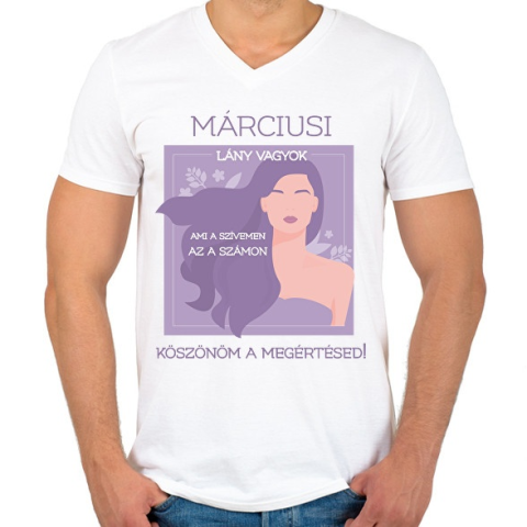 1 kép PRINTFASHION Márciusi lány vagyok2 - Férfi V-nyakú póló - Fehér
