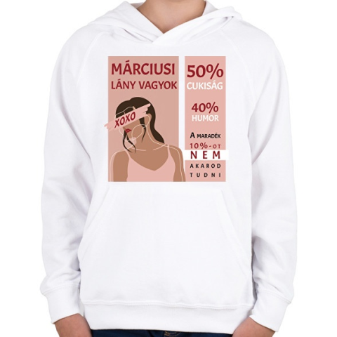 1 kép PRINTFASHION Márciusi lány vagyok - százalékos - Gyerek kapucnis pulóver - Fehér
