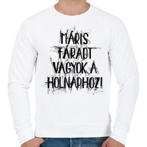 1 kép PRINTFASHION Máris fáradt vagyok a holnaphoz - Férfi pulóver - Fehér