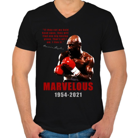 1 kép PRINTFASHION Marvin Hagler - Férfi V-nyakú póló - Fekete