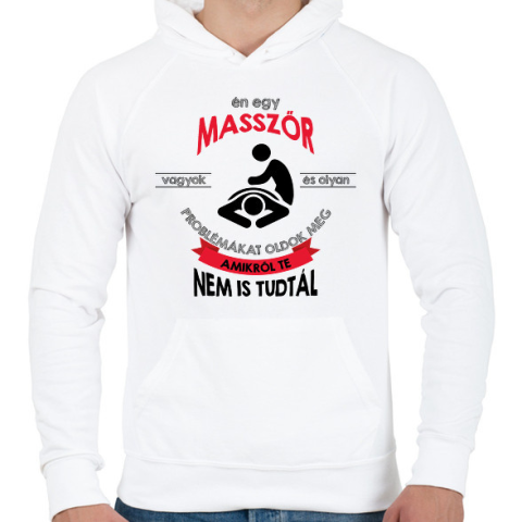 1 kép PRINTFASHION Masszőr vagyok - Férfi kapucnis pulóver - Fehér