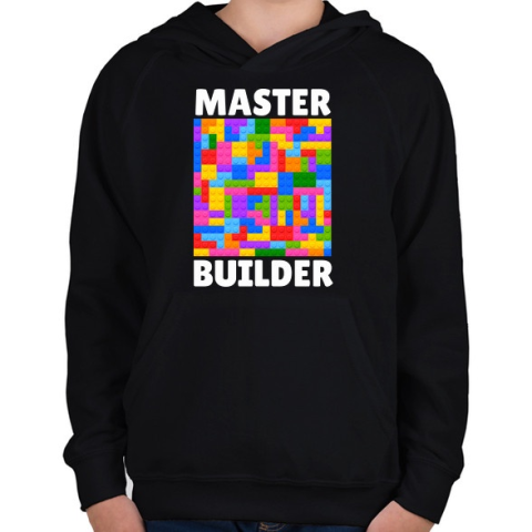 1 kép PRINTFASHION Master Builder - Gyerek kapucnis pulóver - Fekete