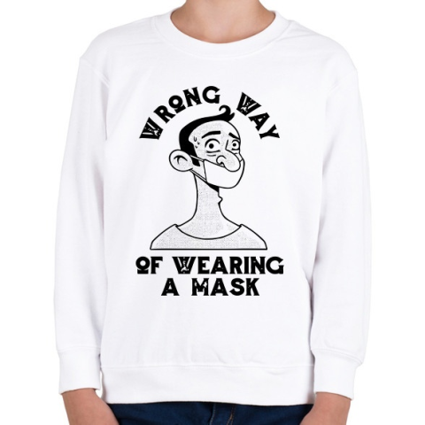1 kép PRINTFASHION Maszk használat - rosszul - Wrong way - Gyerek pulóver - Fehér