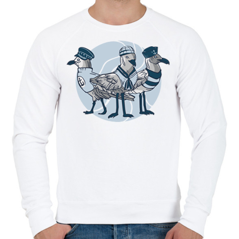 1 kép PRINTFASHION Matróz sirályok - Férfi pulóver - Fehér