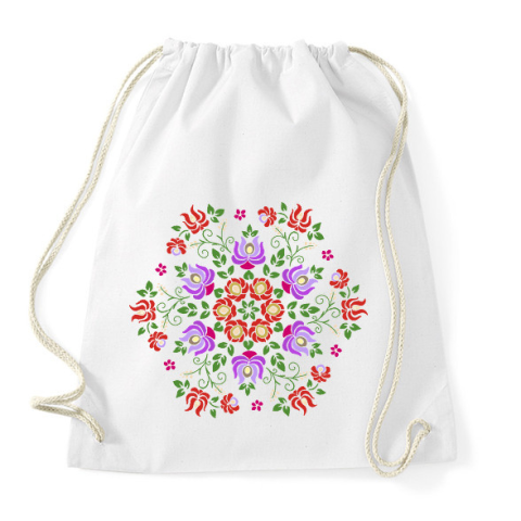 1 kép PRINTFASHION Matyó mintás mandala - Sportzsák, Tornazsák - Fehér