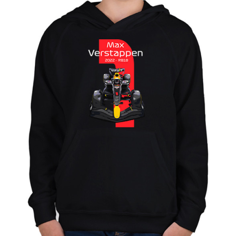 1 kép PRINTFASHION Max Verstappen 1 autóversenyző - fehér felirat - Gyerek kapucnis pulóver - Fekete