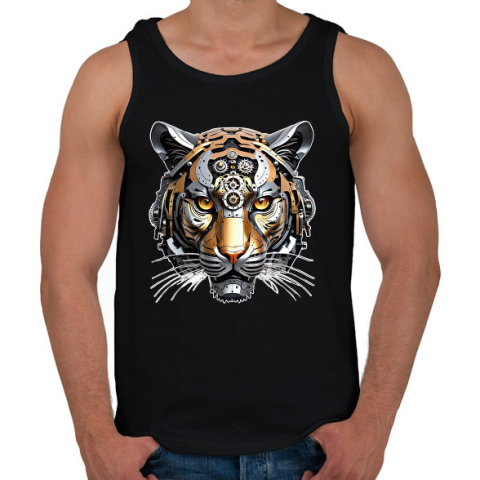 1 kép PRINTFASHION Mechanikus tigris - Férfi atléta - Fekete
