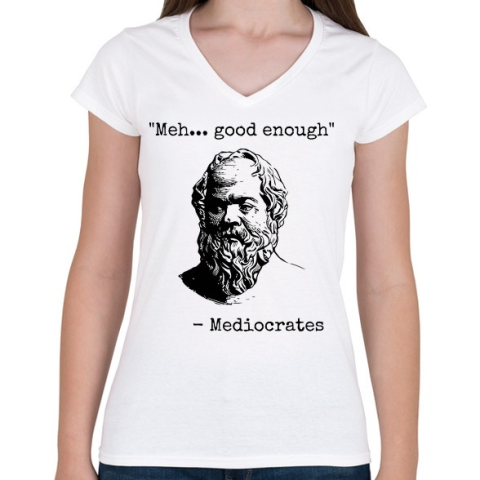 1 kép PRINTFASHION Mediocrates - Női V-nyakú póló - Fehér
