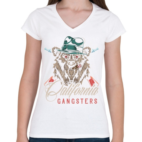1 kép PRINTFASHION Medve 04 - California Gangsters - Női V-nyakú póló - Fehér
