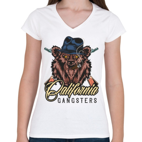 1 kép PRINTFASHION Medve 06 - California Gangsters - Női V-nyakú póló - Fehér