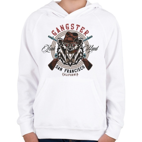 1 kép PRINTFASHION Medve 07 - San Francisco Gangster - Gyerek kapucnis pulóver - Fehér