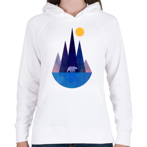 1 kép PRINTFASHION Medve és hegyek - Női kapucnis pulóver - Fehér