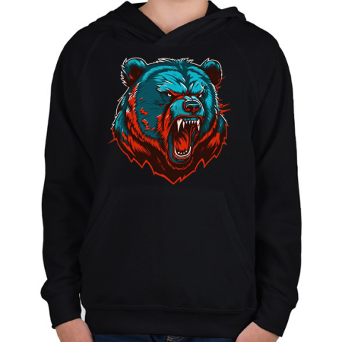 1 kép PRINTFASHION medve - Gyerek kapucnis pulóver - Fekete