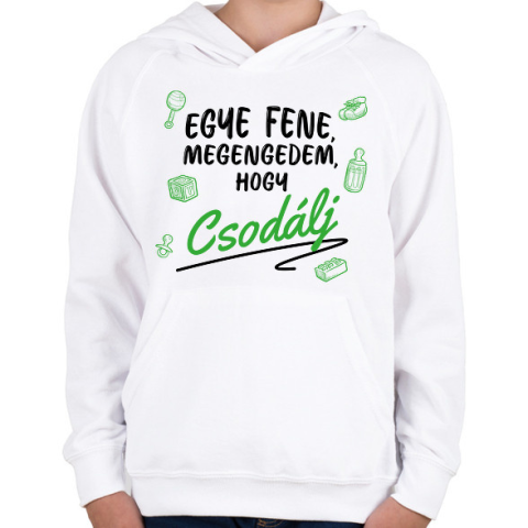 1 kép PRINTFASHION Megengedem, hogy csodálj - Zöld - Gyerek kapucnis pulóver - Fehér