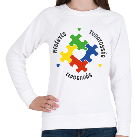 1 kép PRINTFASHION Megértés, tudatosság, elfogadás - Női pulóver - Fehér