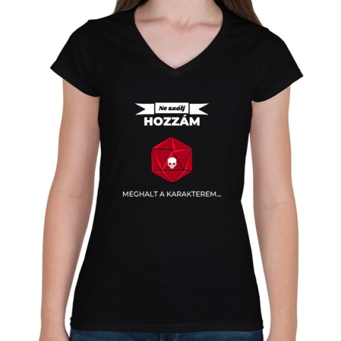1 kép PRINTFASHION Meghalt a karakterem - Női V-nyakú póló - Fekete