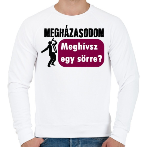 1 kép PRINTFASHION Megházasodom! Meghívsz egy sörre? (részeg fazon) - Férfi pulóver - Fehér