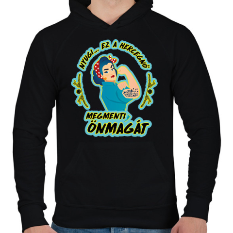1 kép PRINTFASHION Megmenti önmagát - Férfi kapucnis pulóver - Fekete