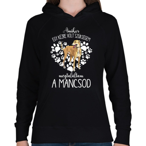 1 kép PRINTFASHION Megtaláltam a mancsod - Agár - Női kapucnis pulóver - Fekete