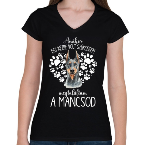 1 kép PRINTFASHION Megtaláltam a mancsod - Dobermann - Női V-nyakú póló - Fekete
