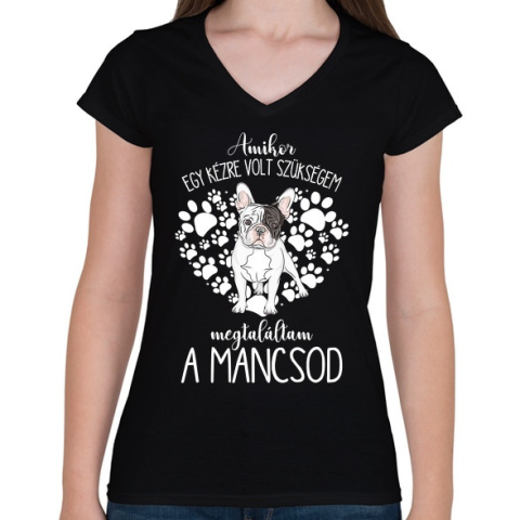 1 kép PRINTFASHION Megtaláltam a mancsod - Francia Bulldog - Női V-nyakú póló - Fekete