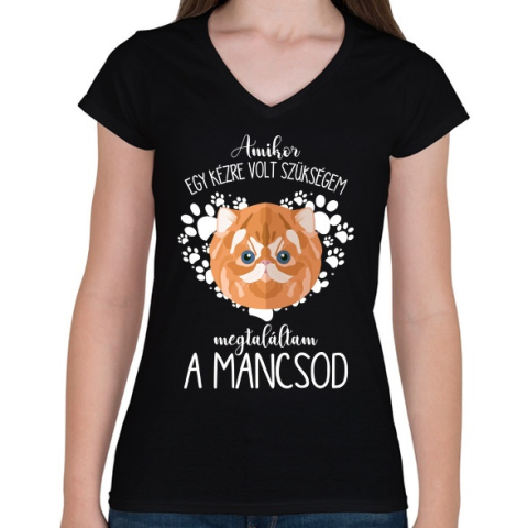 1 kép PRINTFASHION Megtaláltam a mancsod - Macska - Női V-nyakú póló - Fekete
