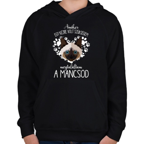 1 kép PRINTFASHION Megtaláltam a mancsod - Sziámi - Gyerek kapucnis pulóver - Fekete