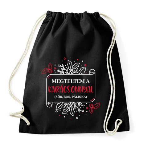 1 kép PRINTFASHION Megteltem a Karácsonnyal - Sportzsák, Tornazsák - Fekete