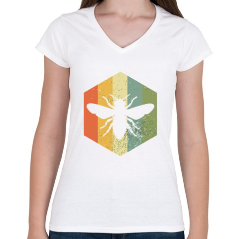 1 kép PRINTFASHION Méh - Női V-nyakú póló - Fehér