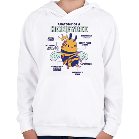 1 kép PRINTFASHION Méhecske anatómia - Gyerek kapucnis pulóver - Fehér
