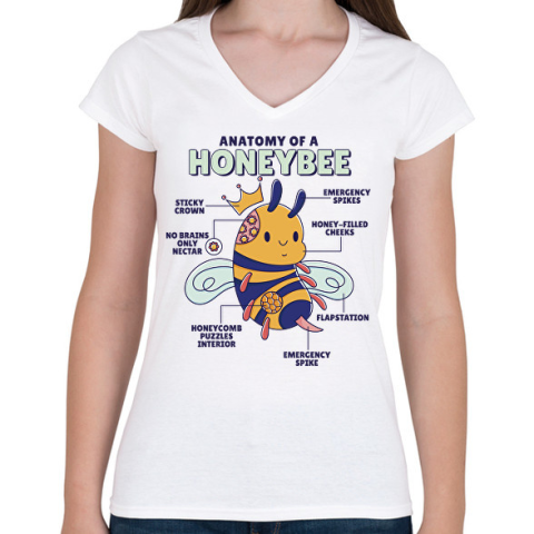 1 kép PRINTFASHION Méhecske anatómia - Női V-nyakú póló - Fehér