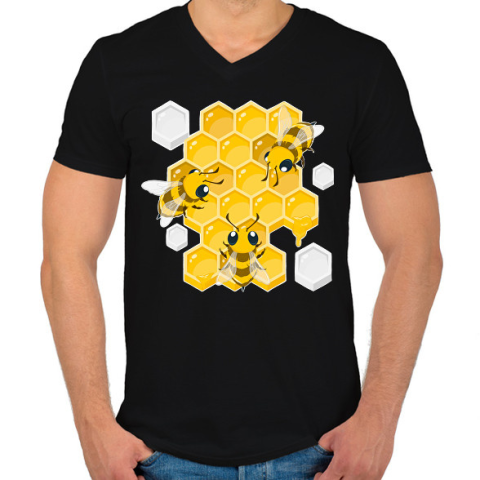 1 kép PRINTFASHION méhész - Férfi V-nyakú póló - Fekete