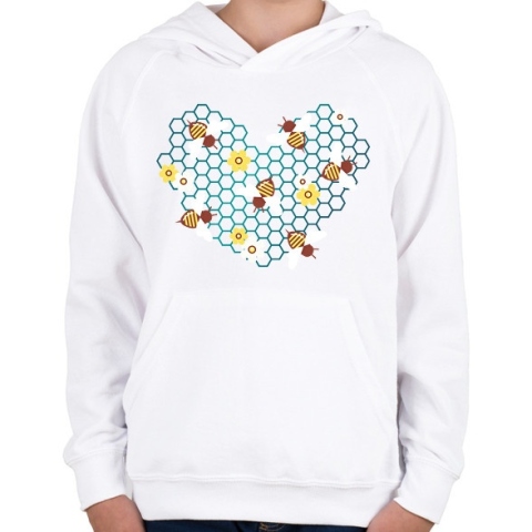 1 kép PRINTFASHION Méhész szív - Gyerek kapucnis pulóver - Fehér