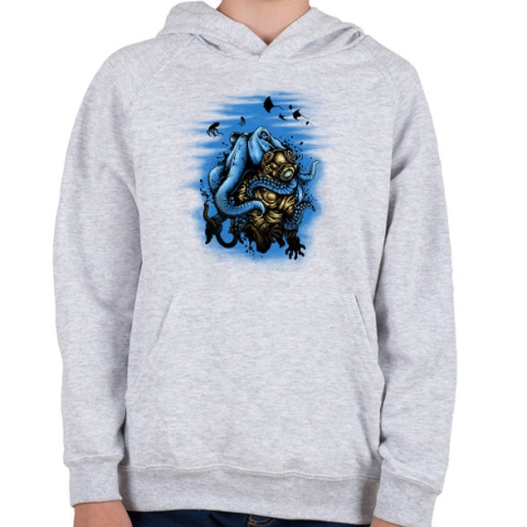 1 kép PRINTFASHION Mélytengeri szörny - Gyerek kapucnis pulóver - Sport szürke