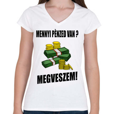 1 kép PRINTFASHION MENNYI PÉNZED VAN - Női V-nyakú póló - Fehér