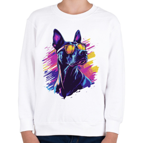 1 kép PRINTFASHION Menő Doberman - Gyerek pulóver - Fehér