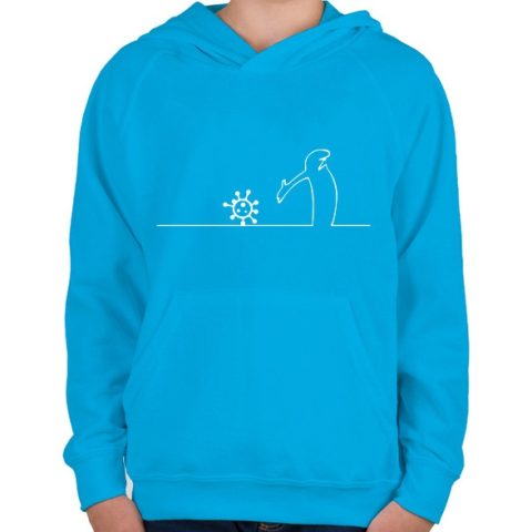 1 kép PRINTFASHION Menő Manó és a koronavírus / fehér minta - Gyerek kapucnis pulóver - Azúrkék