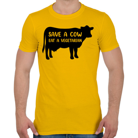 1 kép PRINTFASHION Mentsd meg egy tehenet - Férfi póló - Sárga