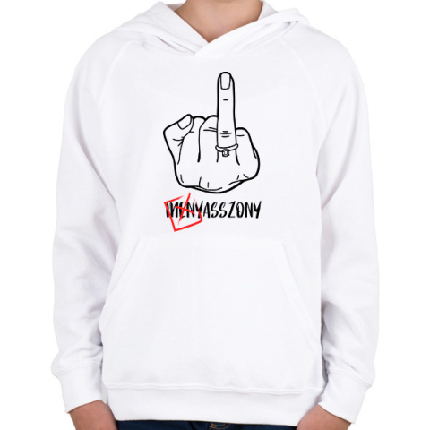 1 kép PRINTFASHION Menyasszony VS Asszony - Lánybúcsús póló minta - Gyerek kapucnis pulóver - Fehér