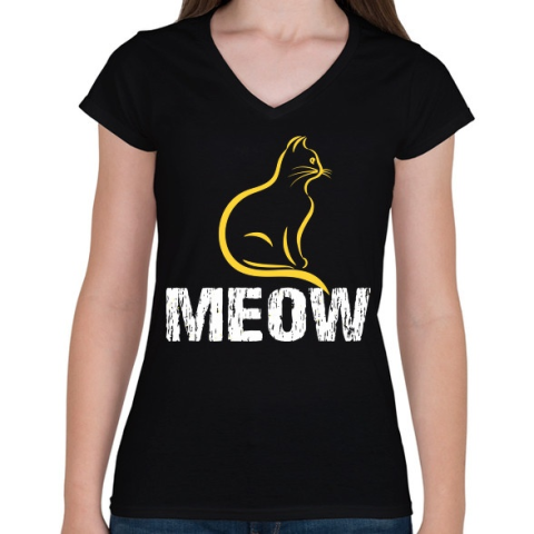 1 kép PRINTFASHION MEOW - Női V-nyakú póló - Fekete